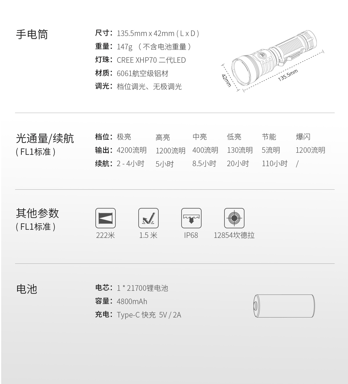 电池规格:21700